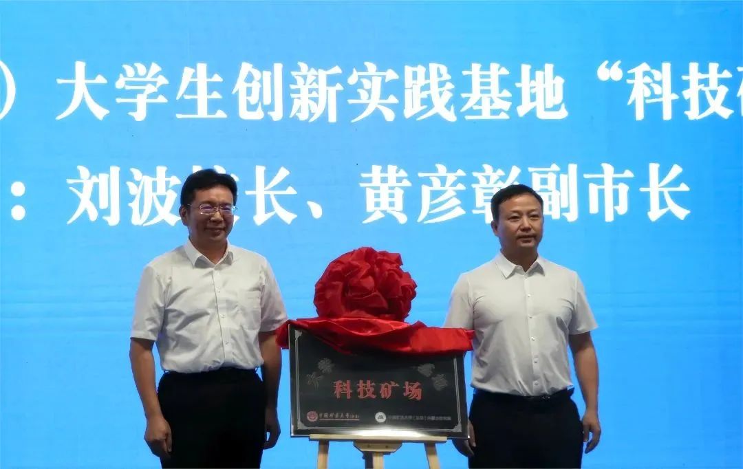 中國礦業大學(北京)校長劉波,鄂爾多斯市委常委、副市長黃彥彰為中國礦業大學(北京)大學生創新實踐基地“科技礦場”揭牌