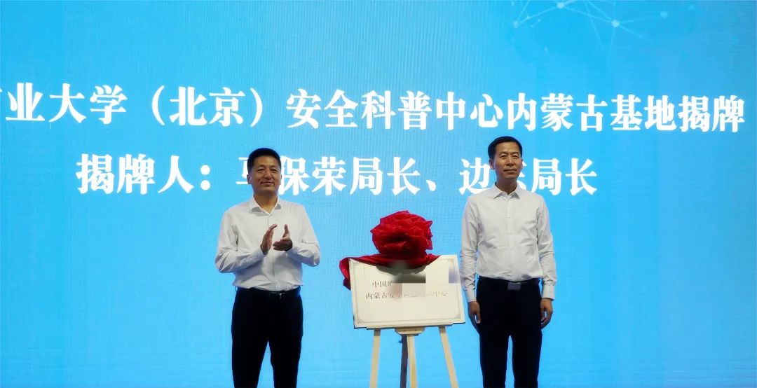 鄂爾多斯市應急管理局黨委書記、局長馬保榮和鄂爾多斯市科學技術局黨組書記、局長邊東為中國礦業大學(北京)安全科普中心內蒙古基地揭牌