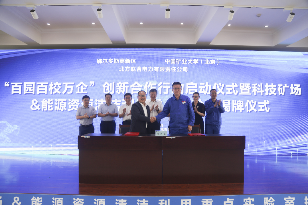 會上,中國礦業(yè)大學(北京)與北方魏家峁煤電有限責任公司簽訂了“‘科技礦場’中國礦業(yè)大學(北京)創(chuàng)新實踐基地協(xié)議”并為“科技礦場”揭牌。同時,中國礦業(yè)大學(北京)內(nèi)蒙古研究院與北方魏家峁煤電有限責任公司簽訂戰(zhàn)略合作協(xié)議并為“能源資源清潔利用重點實驗室”揭牌。