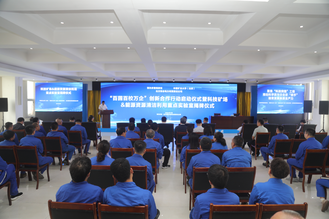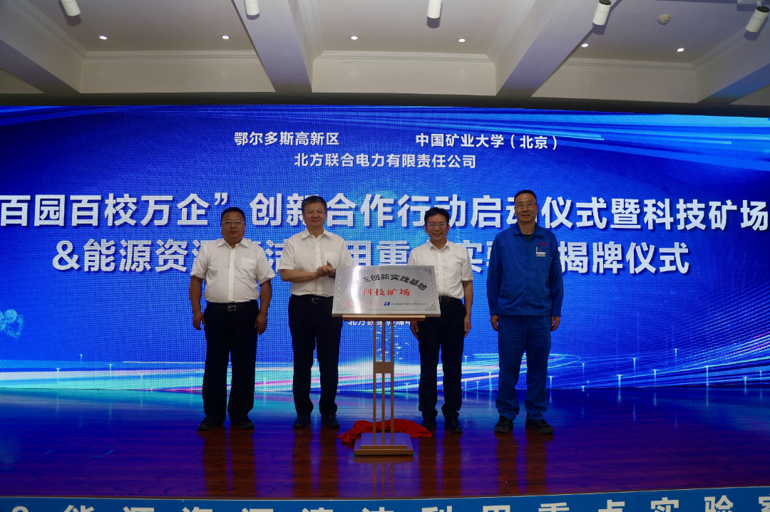 本網(wǎng)訊 7月15日,“百園百校萬企”創(chuàng)新合作行動啟動儀式暨科技礦場&能源資源清潔利用重點實驗室揭牌儀式在北方魏家峁煤電有限責任公司舉行。中國礦業(yè)大學(北京)黨委副書記、校長劉波,北方聯(lián)合電力有限責任公司黨委副書記、總經(jīng)理李悅,鄂爾多斯高新區(qū)黨工委副書記、管委會主任張鵬程等出席,活動由中國礦業(yè)大學(北京)副校長崔希民主持。