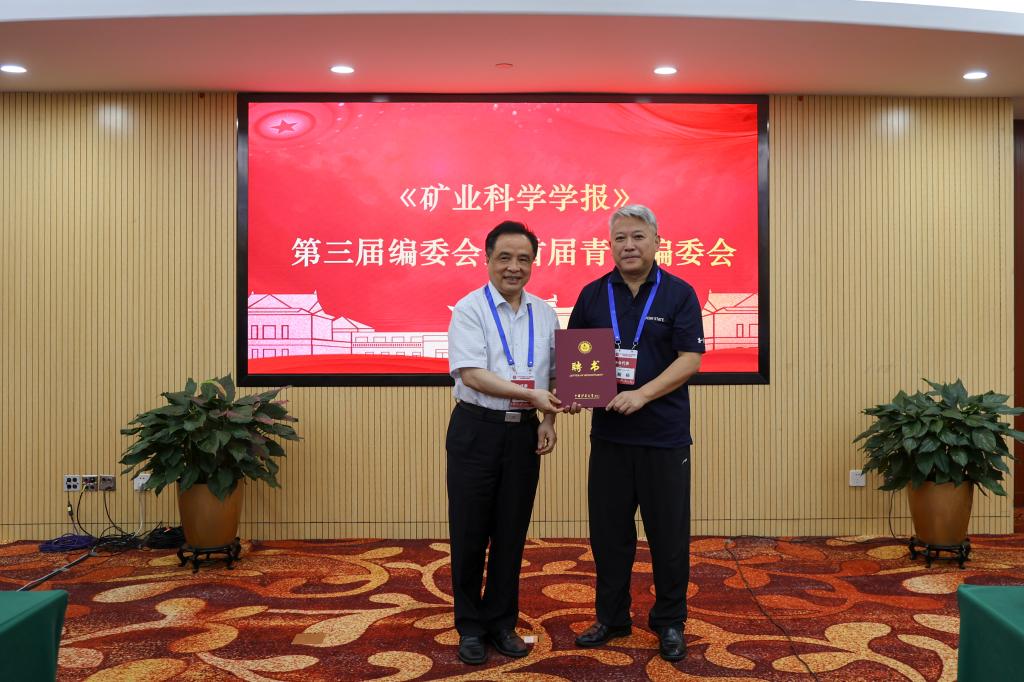 隨后,彭蘇萍院士宣讀了《礦業(yè)科學(xué)學(xué)報(bào)》第三屆編委會(huì)組成名單。本屆編委會(huì)由88名國(guó)內(nèi)專(zhuān)家學(xué)者和6名海外專(zhuān)家學(xué)者組成。彭蘇萍主編和劉波校長(zhǎng)共同為到會(huì)的編委委員頒發(fā)聘書(shū)并合影留念。