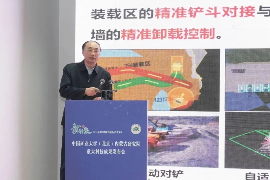 發布會上,葛世榮作了“大型露天礦機器人化自主運輸裝卸技術與應用示范”項目成果發布。中國工程院院士、中國礦業大學(北京)內蒙古研究院院長武強作了“煤礦突水體安全深貯關鍵技術研發與應用示范”項目成果發布。中國礦業大學(北京)劉淑琴教授團隊作了“深部煤制氣技術進展及聯合實驗室建設”項目成果發布。中國礦業大學(北京)內蒙古研究院礦山水害防控中心主任李沛濤教授作了“鄂爾多斯市煤礦水害隱患排查專家會診”項目成果發布。