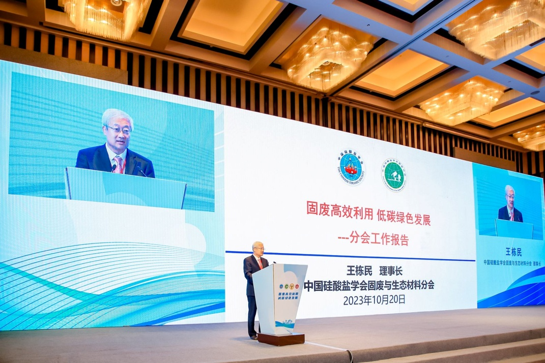 中國硅酸鹽學會固廢與生態材料分會理事長、中國礦業大學(北京)王棟民教授在作分會工作報告,回顧了自2015年成立以來的主要工作成績,重點闡述了第二屆理事會成立后兩年來理事會所做的重要工作,并對未來兩年的工作做了整體部署與安排。王棟民的理事會工作報告,重點突出學術交流前沿、人才交流、社會服務等工作。他在報告中總結,分會理事會在固廢利用領域做了大量工作,取得了一定進展,未來將繼續為促進大宗工業和城市固廢綠色、低碳、高質量、規模化利用不懈努力,支持“大宗工業固廢基地”和“無廢城市”建設。