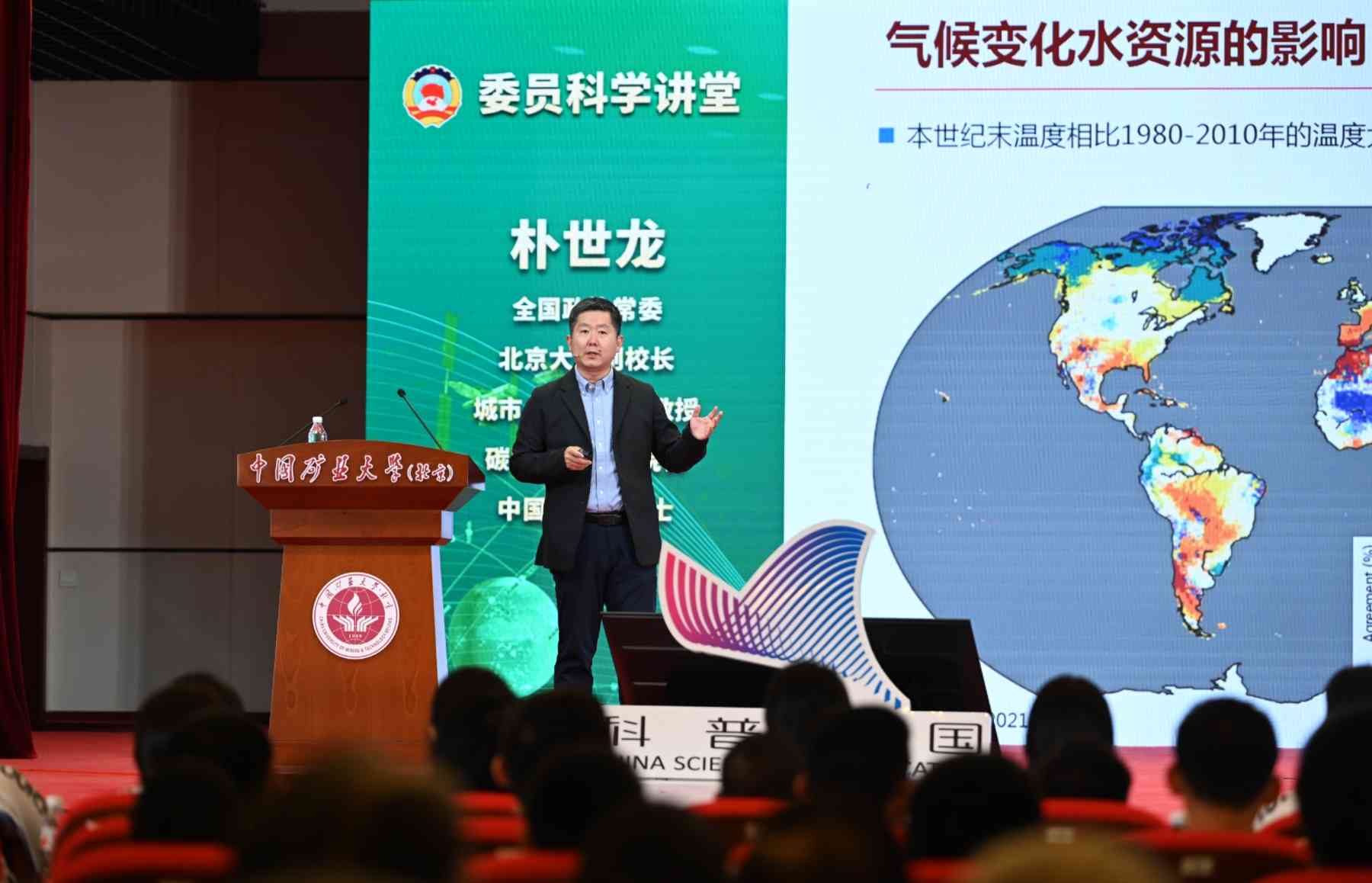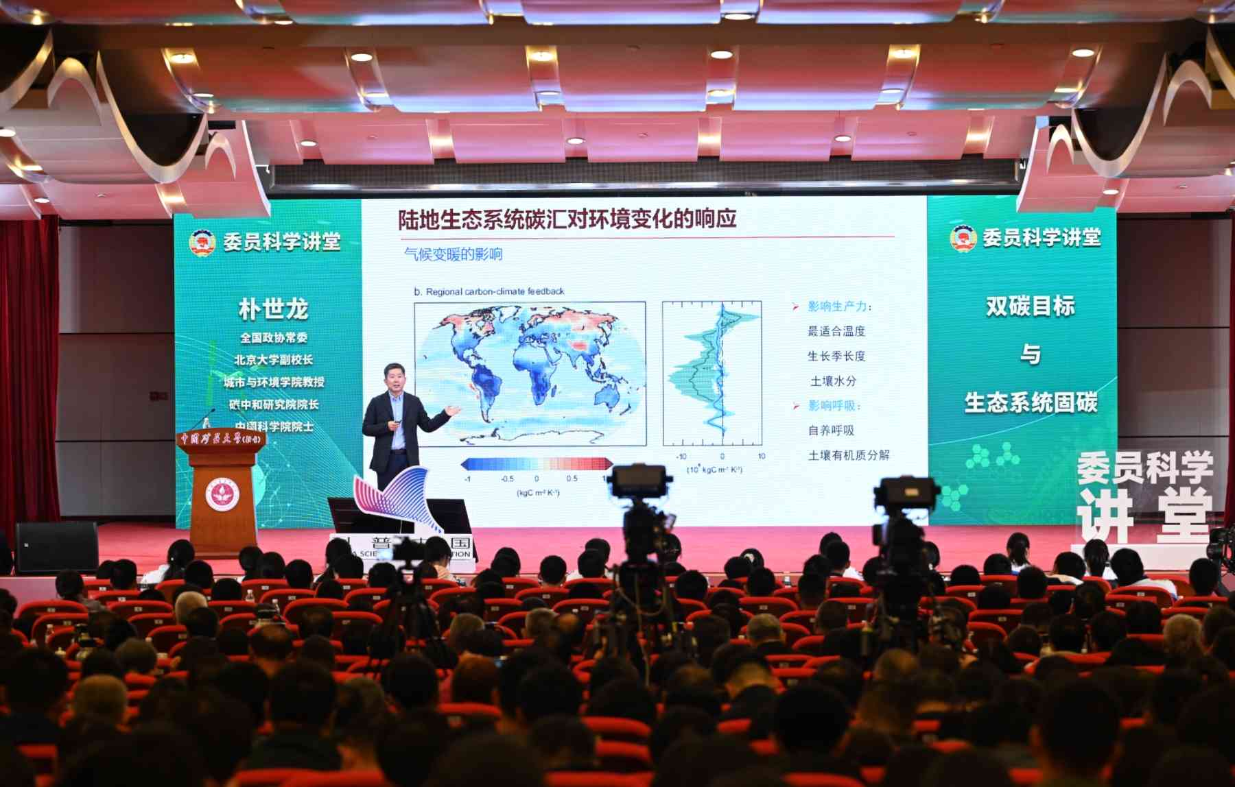 全國政協常委、中國科學院院士樸世龍以“‘雙碳’目標與生態系統固碳”為題作科普講座