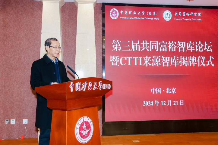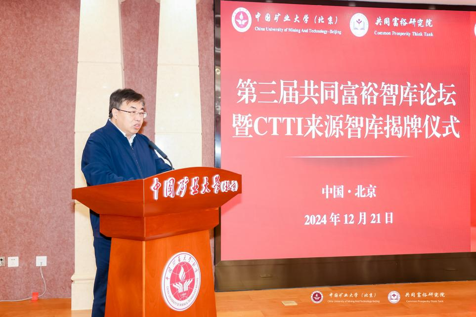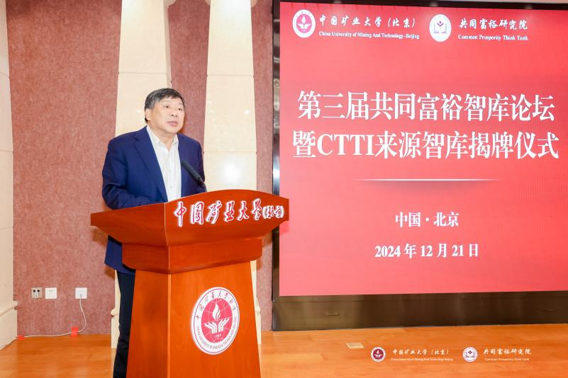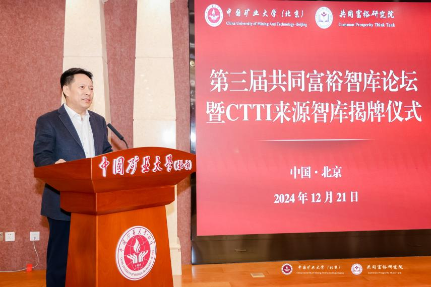 本網(wǎng)訊 12月21日,第三屆共同富裕智庫論壇暨CTTI來源智庫揭牌儀式在中國礦業(yè)大學(xué)(北京)舉行。本次論壇匯聚了來自國家部委、高端智庫、兄弟高校及媒體機構(gòu)的眾多領(lǐng)導(dǎo)和專家學(xué)者,共同探討共同富裕理論與實踐路徑,見證中國礦業(yè)大學(xué)(北京)共同富裕研究院入選中國智庫索引(CTTI)來源智庫。