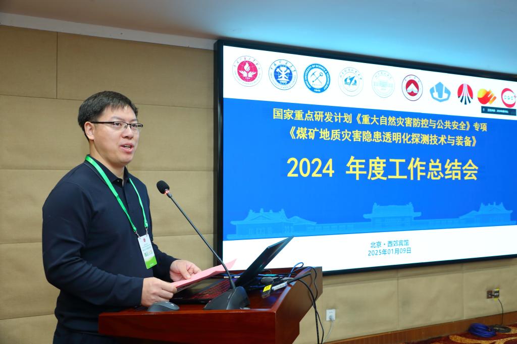 本網訊 1月9日上午,由中國礦業大學(北京)作為牽頭承擔單位,許獻磊教授主持的“十四五”國家重點研發計劃項目“煤礦地質災害隱患透明化探測技術與裝備”(編號:2023YFC3008900,以下簡稱項目)2024年度工作總結會在北京召開。項目技術總顧問、中國礦業大學(北京)彭蘇萍院士,項目跟蹤專家、國煤炭科工集團有限公司劉見中研究員和中國科學院武漢巖土力學研究所李小春研究員,項目咨詢專家、中國煤炭地質總局趙譜教授級高級工程師、中煤科工集團重慶研究院有限公司胡運兵研究員、中南大學李帝銓教授、煤炭科學研究總院礦山數據標準研究院學術帶頭人郭軍教授級高級工程師參加會議。21世紀議程管理中心社會處干部馮飛勝、中國礦業大學(北京)副校長崔希民、項目各課題負責人及研究骨干等60余人出席了會議。